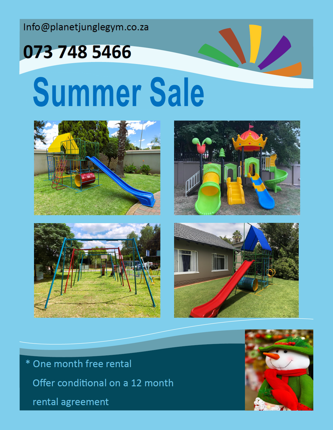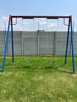 Is your old wooden jungle gym looking sad? Is it a bit broken under the weather? You got a quote to fix it for almost the extravagant price of a new one? Why not give some steel appeal? Add a bit of colour that will last for years! We'll put our pedal to the metal and also make your old structure safe again... for Mahala! That's right, spice it up with our strong and sturdy steel equipment and well save your old structure, where we of course, for free.
